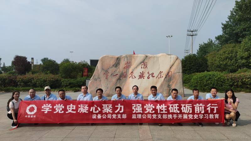 為了慶祝中國共產(chǎn)黨成立100周年,落實黨史學(xué)習教育工作計劃, 6月11日,我院設(shè)備公司和監(jiān)理公司黨支部在中共安徽第一面黨旗紀念園和中國建材(合肥)技術(shù)中心工程項目現(xiàn)場開展主題為“學(xué)黨史、感黨恩、跟黨走”黨史學(xué)習教育實踐活動,支部黨員、入黨積極分子和部分中層以上干部參加了此次活動。